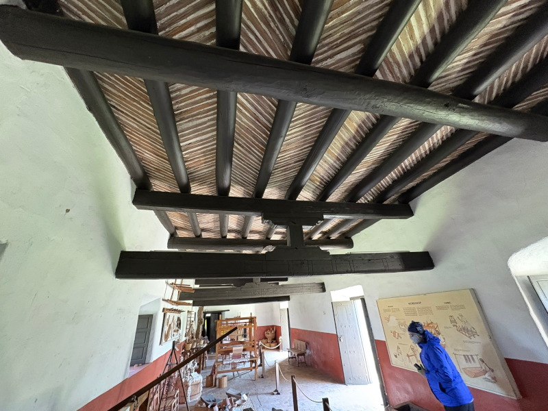 The museum at the Goliad mission. Weaving, spinning, and dyeing displays.