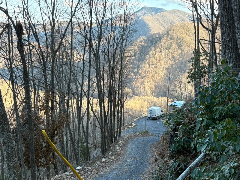 On Thursday, we formed a two-vehicle caravan headed from Nashville to Maggie Valley, North Carolina, to open the kids’ Glamping tent for the season.  The trip took us on I-40 to Newport, Tennessee, where we detoured up US 25 to bypass the closed section of I-40, destroyed by hurricane Helene last fall.  The French Broad River along US 25 was also the site of much devastation wrought by the hurricane, with much of the lowlands along the river scoured of trees and structures.  The route twisted and turned, becoming tortuous as we departed the river, winding through a maze of country roads over the foothills of the Smoky Mountains.  One climbing set of tight curves knocked over our drinking water supply, which Judy hastily righted, but several liters spilled on the van floor, spreading in rivulets as the van shifted from side to side on the mountain road.  The spout broke, but the pump still works.